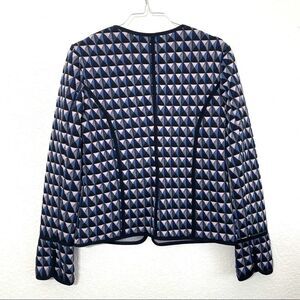 Blazer Jacket Cotten Blend Anthro Business Casual Fitted Geometric Teacher Layer