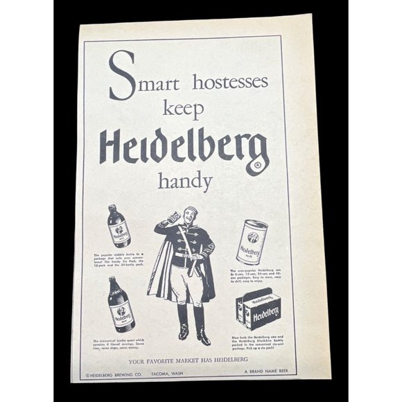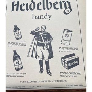 Heidelberg Handy Beer Brewing Vintage Print Ad 1954 Tacoma WA Stubble Bottle