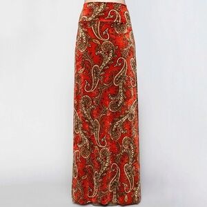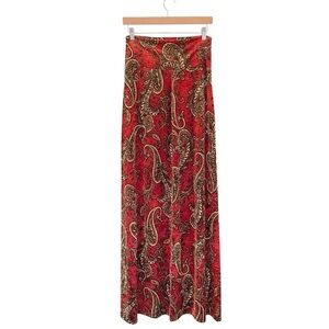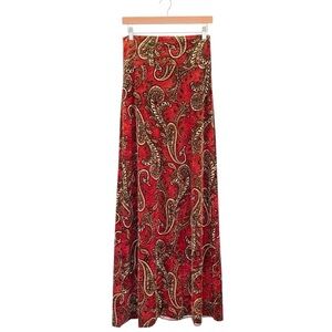 Heidi Abra Red Paisley Arabella Crushed Velvet Maxi Skirt Stretch Rayon M/L