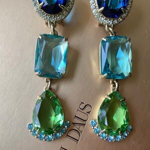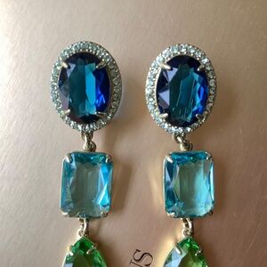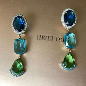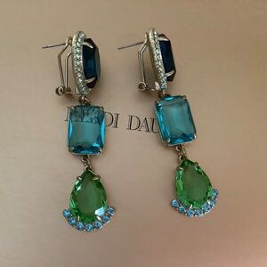 Heidi Daus Alta Moda Crystal Drop Dangle Earrings Aqua Blue Pierced