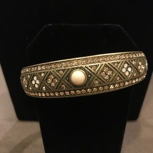 This Bangle is a Heidi classic which every gal should own! Art Deco inspired are encrusted with hundreds multi-color Swarovski crystals and simulated pearl accent.