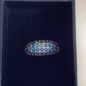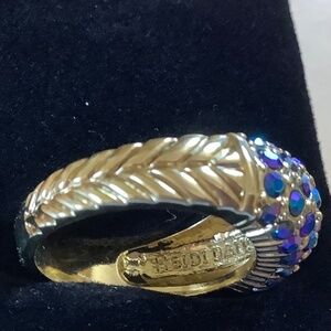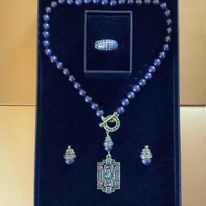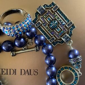 Heidi Daus Beaded Crystal Toggle Necklace With Earrings and Ring Set Blue Multi