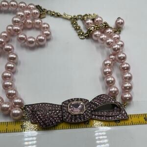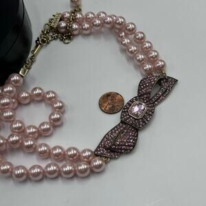 Heidi Daus "Beaux Arts" Pink Pave Crystal Bow Pearl Beaded Two Strand Necklace