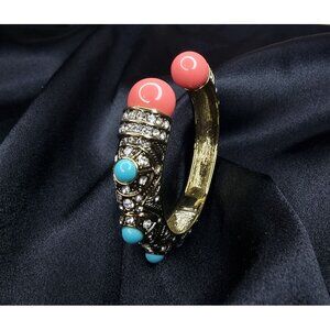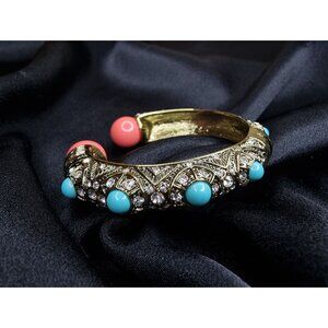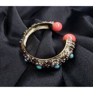 Heidi Daus Bejeweled Gold-Tone Cuff Bracelet W/ Turquoise & Coral Accents Rhines