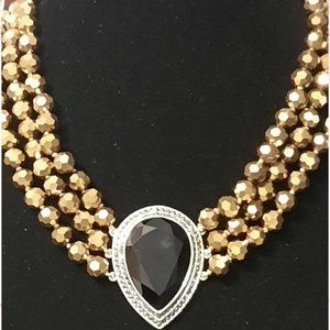 Heidi Daus Capture My Heart enamel 3-strand rare gold beaded crystal heart necklace. This unique piece from Heidi Daus is a turner, (like most of her exquisite pieces) exclusive just for the wearer, not too many of it out here, love to be unique then this is for uuuuu. You can't be wrong for any date in this gold lustrously and dazzling masterpiece. Be it a wedding, love date, outing, evening date, evening party, wedding, valentines etc. Is 17" in length x 3/8" eight with an extender.