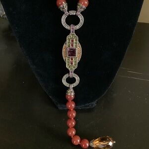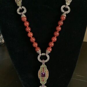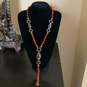 Heidi Daus Carnelian Y-Not Crystal Beaded Long Necklace Red