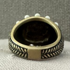 Heidi Daus Champagne Crystals Cream Cabachons Gold Tone Statement Ring- 10