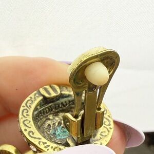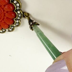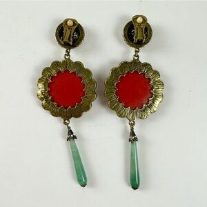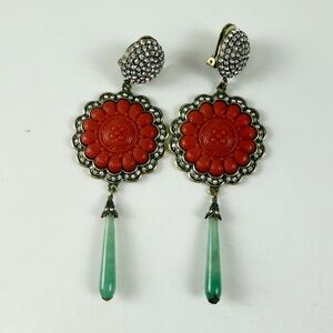 Heidi Daus Chinois Crystal Dangle Drop Clip On Earrings Coral Color Jade Boho