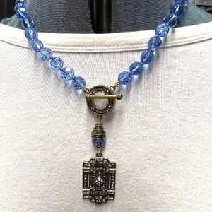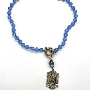 Heidi Daus “Classic Edition” Swarovski Crystal Vintage Blue toggle necklace EUC