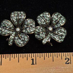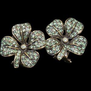 Heidi Daus Clover Clip-On Earrings W/ Crystal Accents Gold Tone Green & Clear Rh