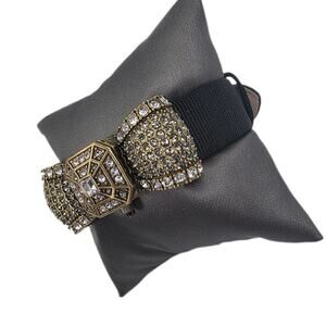 Heidi Daus Crystal Deco Bow Hidden Watch/Bracelet - Leather Band - New Battery