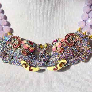 Heidi Daus Double Vision Crystal Beaded Elephant Necklace NWOT