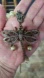 Beautiful sparkling crystals embellish this large Dragonfly pendant suspended from lustrous cream colored faux pearls. In excellent condition.