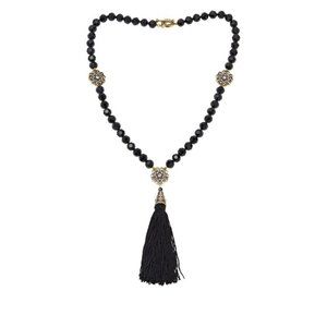 Heidi Daus "Dreams Do Come True" Simulated Pearl Drop Necklace with Tassel - Jet Black