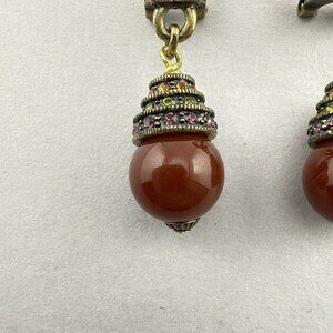Heidi Daus Earrings Art Deco Carnelian Dangle Drop Multicolor Omega Back Pierce