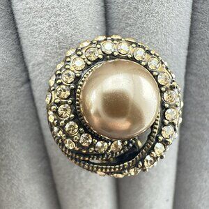 Heidi Daus Earrings Spiral Round Imitation Pearl Rhinestones Mocha Omega Back