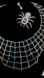 This stunning gold necklace features intricate blue accents, paired with a unique spider brooch. Perfect for adding a touch of elegance to any outfit.