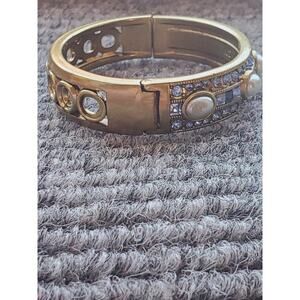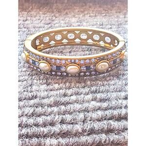 Heidi Daus Faux Pearl Hinged Wristband Bangle Bracelet Crystal Signed