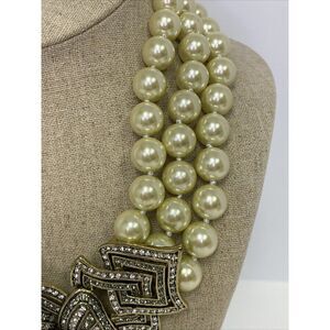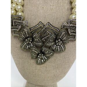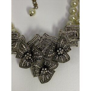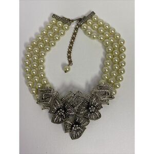 Heidi Daus GOTTA HAVE IT Crystal Accent Flowers 3 Strand Cream Pearl Necklace
