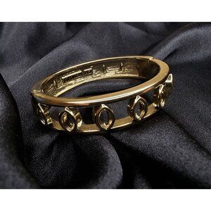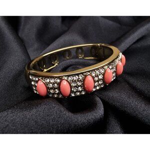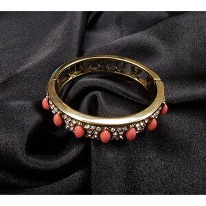 Heidi Daus Gold-Tone Coral Color Cabochon & Crystal Hinged Bangle Bracelet Elega