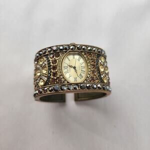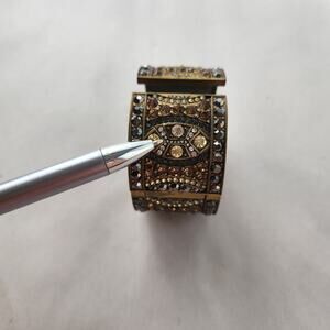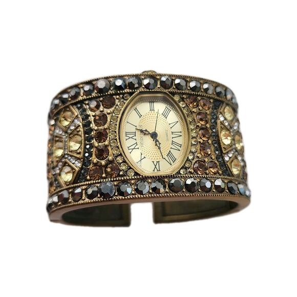 Heidi Daus Hinged Cuff Bracelet Watch Tan Swarovski Crystals Bangle Bronze New