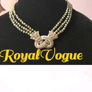 Heidi Daus Love Knot sparkle-shaped/metallic green beaded necklace and the pendant of the love knot is topaz AB crystal