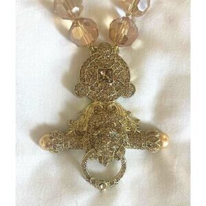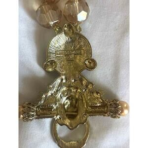 Heidi Daus "Lion Doorknocker" Crystal & Simulated Pearl Beaded Necklace-Topaz