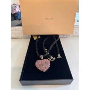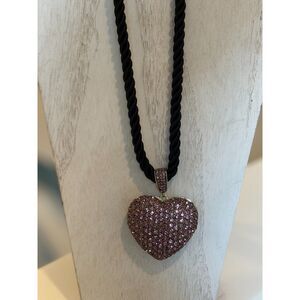 Pink rhinestone Heart Locket on black cord necklace - longest lenght 36" but adjustable option to make it shorter.