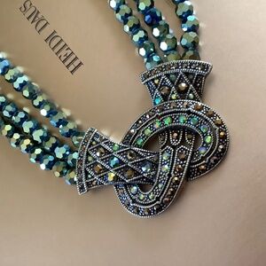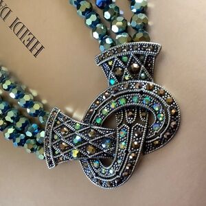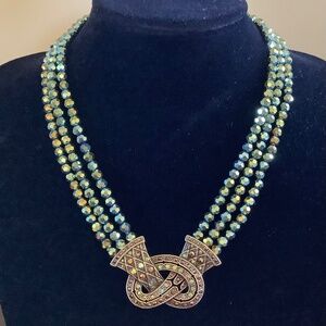 Heidi Daus Love Knot Green Beaded Crystal Necklace