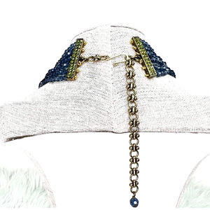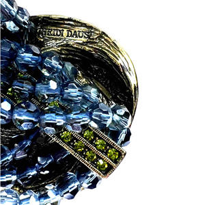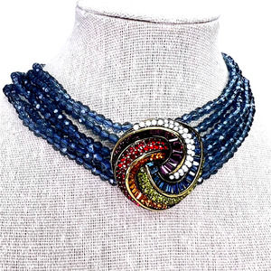 Heidi Daus Multi Strand Blue Beaded Collar Necklace Swarovski Crystal Pendant