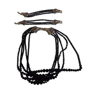 Heidi Daus NWOT Age Of Elegance Black Faceted Bead Crystal Necklace Bracelet Set