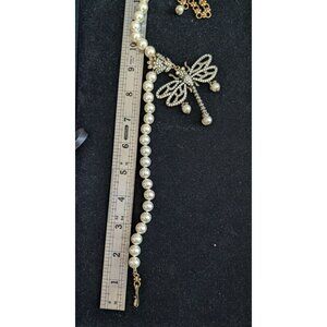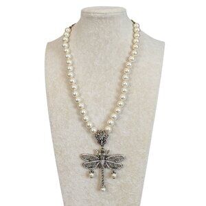 Heidi Daus Pearl Rhinestone Dragonfly Pendant Necklace