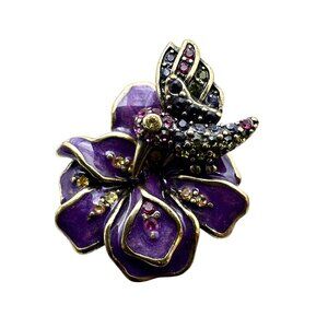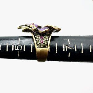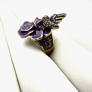 Heidi Daus Purple Crystal Humming Bird Flower Bronze Ring Size 6