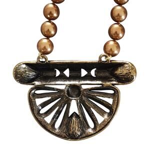 Heidi Daus RARE Gold Pearl Necklace Large Colored Rhinestone Medallion Adjustabl