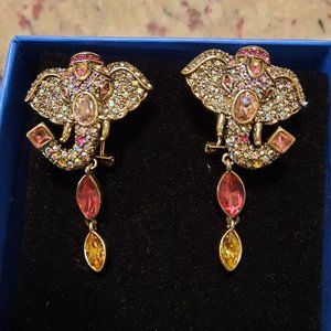 Heidi Daus multicolor crystal earring with a drop of red/gold Swarovski. New in box/never worn. Free repair, manufacturer lifetime warranty.