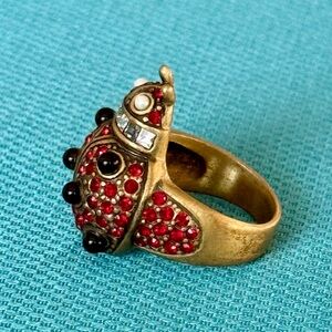Heidi Daus Red & Gold Ladybug Ring with Swarovski Crystals. 🐞 Stamped Authentic