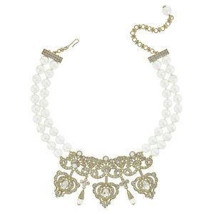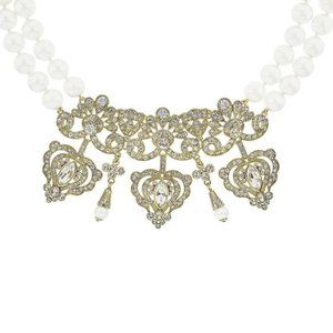 A sumptuously designed center station with curved rows of crystal strung from a double strand of dazzling beads. Pair with the matching earrings to look royally chic!