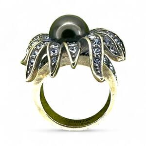 Heidi Daus Ring Sublime Star Size 7 Signed Faux Black Pearl Swarovski Crystal