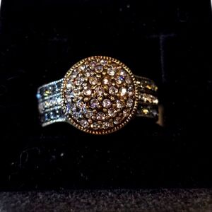 Heidi Daus Round Clear Gray Swarovski Crystal Goldtone Ring 8.5
