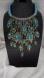 This peacock design bib necklace features crystal filled feathers that cascade down the decolleté with magical movement. Beautiful shades of blue!