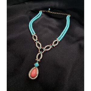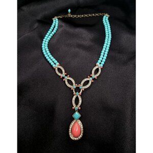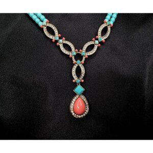 Heidi Daus Statement Necklace W/ Turquoise Beads Crystal Accents