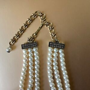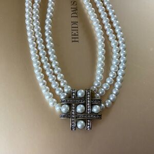 Heidi Daus Tic Tac Toe Three Strand Crystal Beaded Faux Pearl Necklace White
