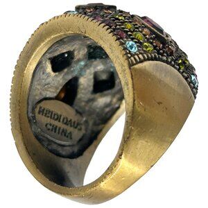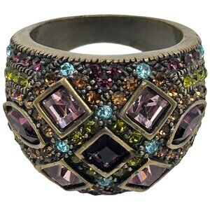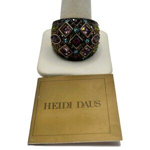 Heidi Daus Wide Band Colorful Crystal Statement Ring - Size 10