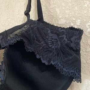 Woman’s comfort padding underwire push-up flower lace bra. Experience comfort and style with this elegant navy lace bra. Perfect for everyday wear, it combines a sophisticated design with a comfortable fit. Size 36D