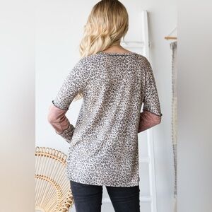 Heimish Full Size Leopard Exposed Seam Contrast T-Shirt 10010061799