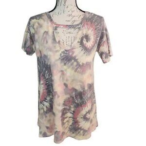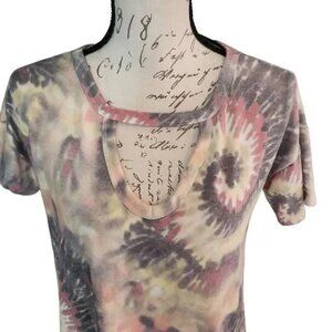 Heimish - Muted Tie Dye Keyhole Short Sleeve Top - Ladies