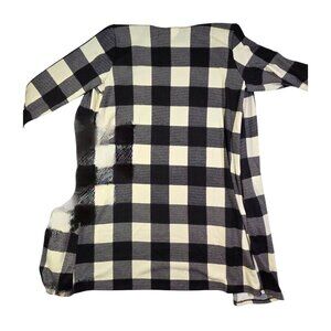 Heimish USA Open Longline Cardigan Black White Buffalo Plaid Pockets Womens Med