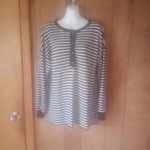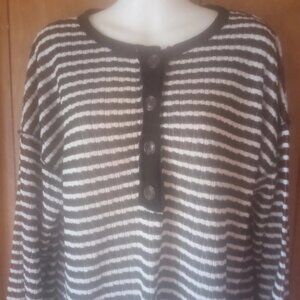 Heimish USA Women's Black White Striped long Sleeve Pullover Top Size M N…