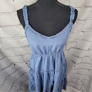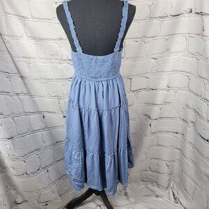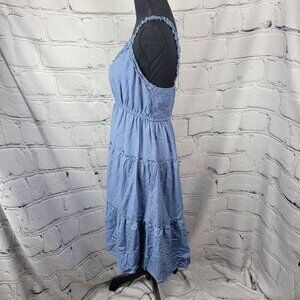Heimish USA Womens L Chambray Sleeveless Midi Dress Linen Cottagecore Neutral