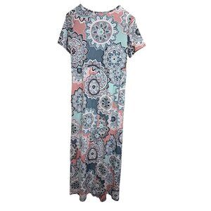 Heimish USA Womens XL Short Sleeve Maxi Dress Multicolor Boho Mandala Stretch